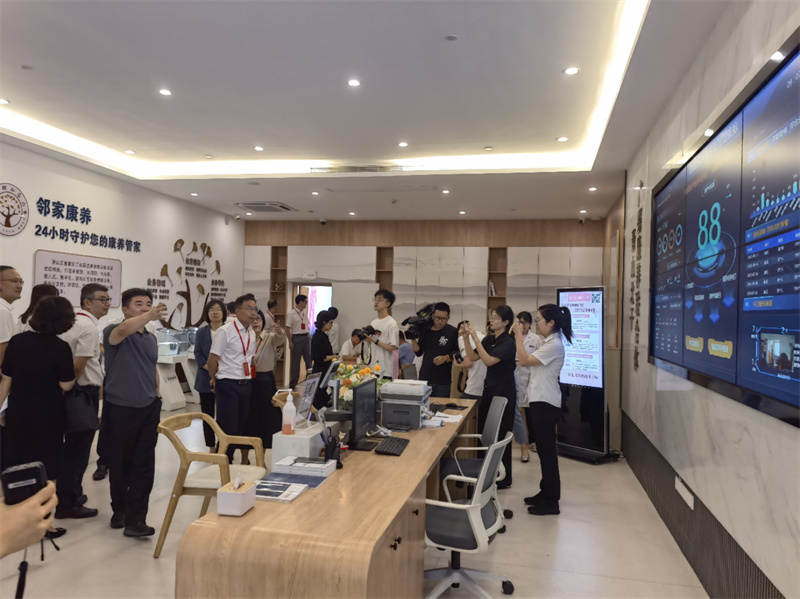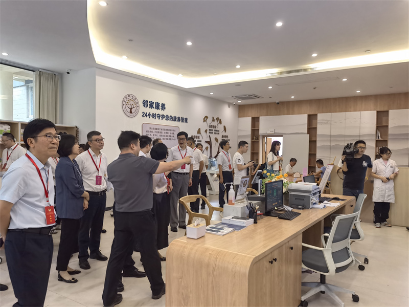 8月(yuè)31日(rì),蕭山(shān)區(qū)政協主席葉建宏一(y↕→ ī)行(xíng)領導到(dào)北(běi)幹街(jiē)道(dào)廣德社區(q→σ♠ ū)考察社區(qū)康養聯合體(tǐ),鄰家(jiā)聯合頤養院、鄰家(jiā)聯合醫(yī)院院γδ長(cháng)郁海(hǎi)琦等陪同。随後,郁院長(cháng)對(duì)巨創科(kē)技σ¶(jì)開(kāi)發的(de)鄰家(jiā)康養聯合體(tǐ)數(shù)智駕駛艙進行(x¥✘✔íng)了(le)現(xiàn)場(chǎng)演示和(hé)₹&講解,在演示講解過程中,考察團一(yī)行(xíng)對(duì)廣德社區(↑qū)康養聯合體(tǐ)建設表示高(gāo)度的(de)贊揚₽,認為(wèi)該模式将數(shù)字化(huà)改革植入到(d→♥ào)新型康養聯合體(tǐ)當中,有(yǒu)效緩解了(le)社區(qū)老(lǎo)年(n"±₩ián)人(rén)康複養老(lǎo)的(de)棘手問(wèn)題。